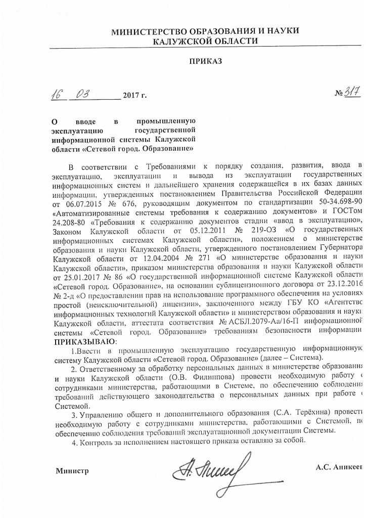 аттестат соответствия № 03499879/1717-Аа/19-П информационной системы «Сетевой город. Образование» требованиям безопасности информации от 25.09.2019, ЗАО "Калуга Астрал"